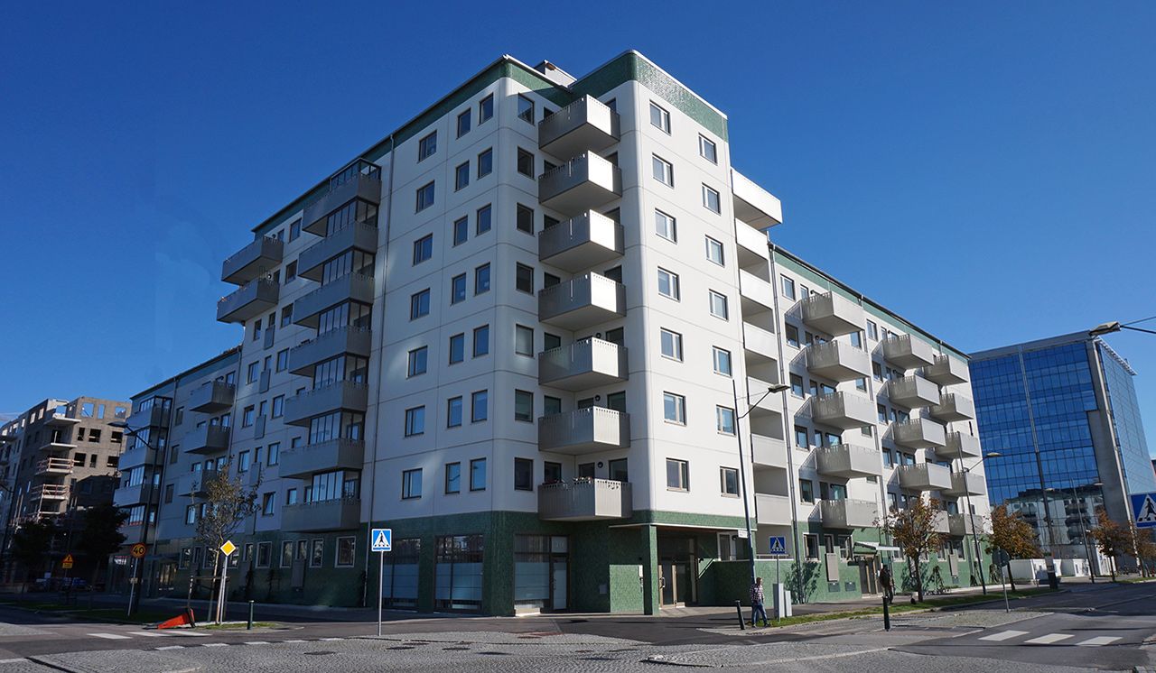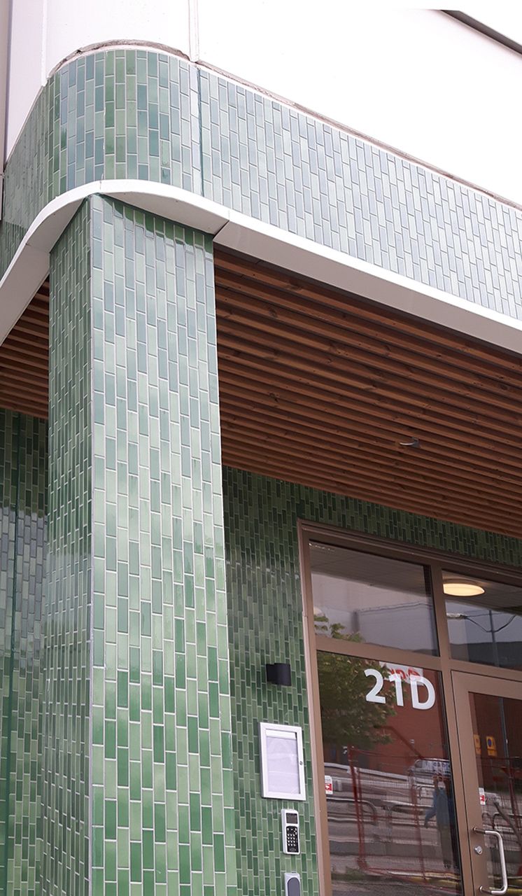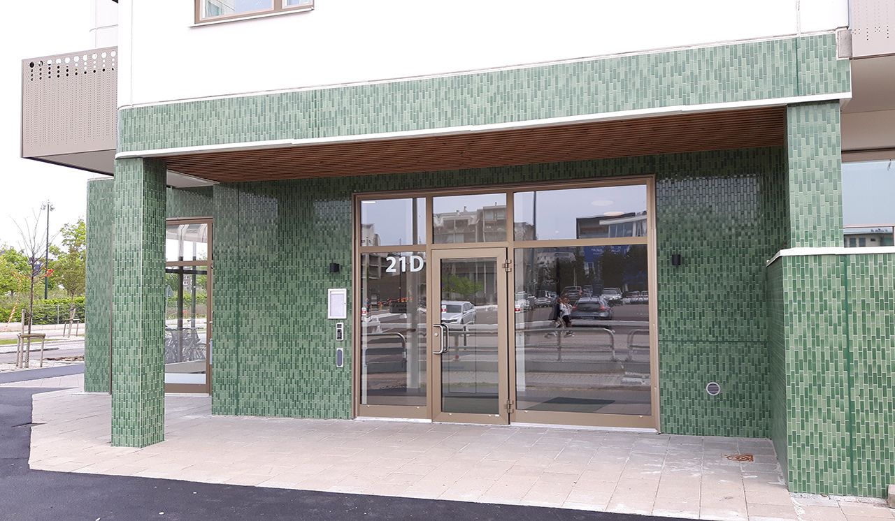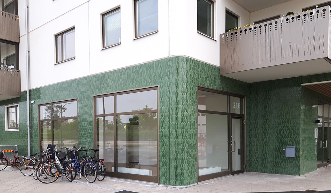 Prunkande, arkitektritade innergårdar i söderläge leder in till Parkens olika kvarter med hus i 4-10 våningar. Där återfinns Ikano Bostads flerbostadshus till vilket Stadstudio arkitekter valde en egendesignad grön mosaik från CeSi, glaserad i olika lager för att få fram skiftningar i fasaden.