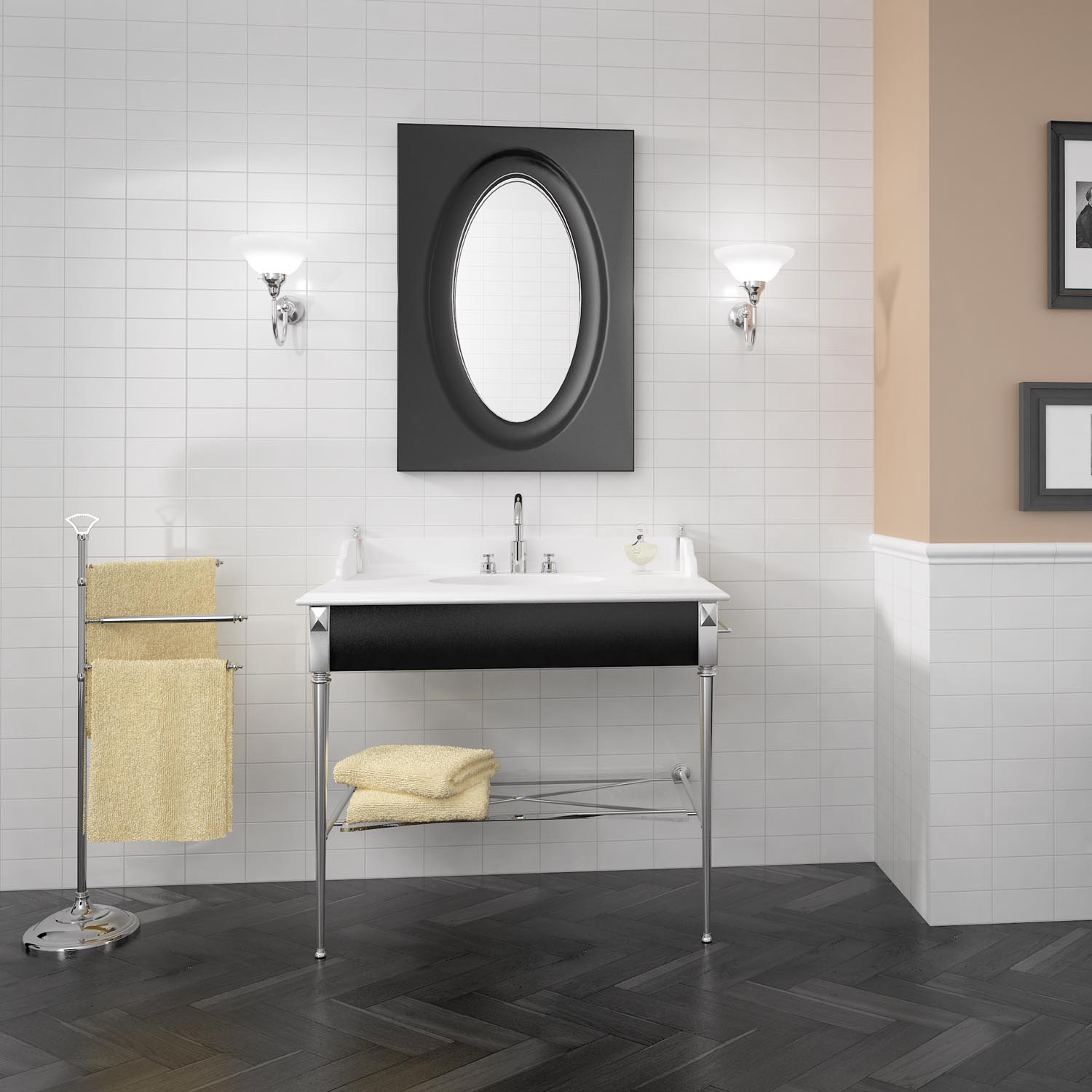 Evolution är ett kakel med enkla rektangulära format i vitt och svart, som passar bra på väggar i vilken miljö som helst.