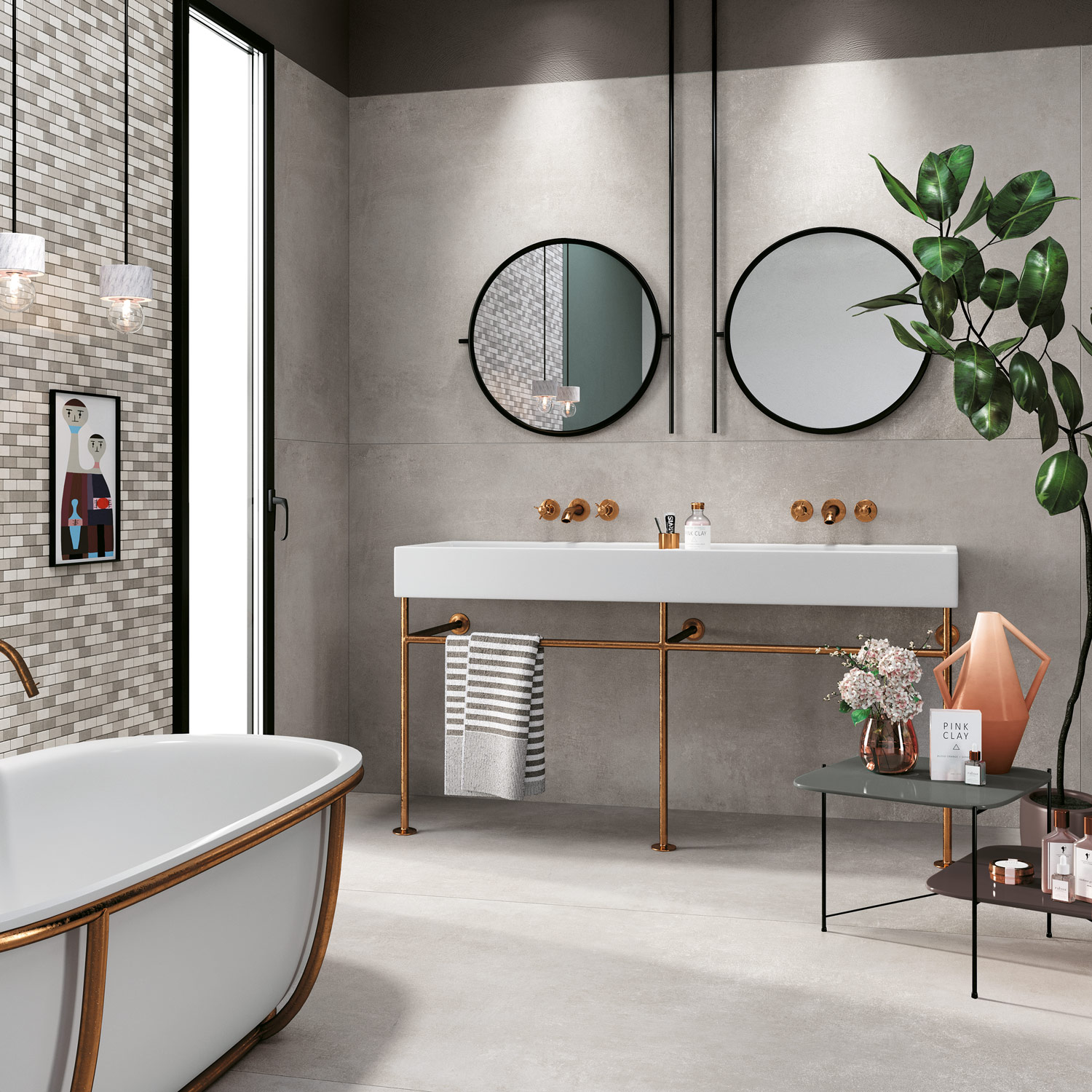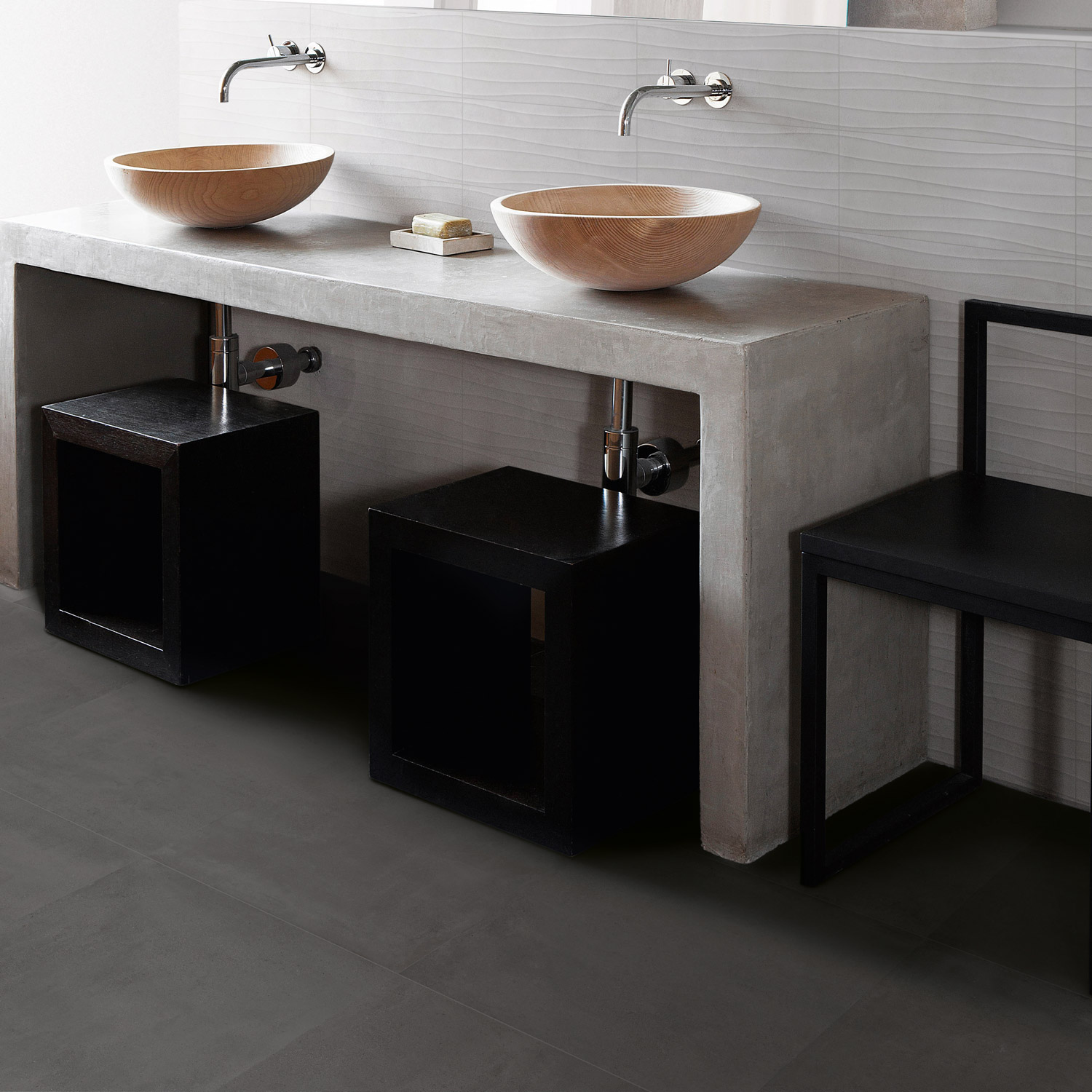 Fem varma och trendiga färger som ger lugn i ett hem där kreativiteten i övrig inredning står i fokus. Serien kan användas för en betonglook på både golv och vägg. För att tillgodose olika behov finns plattorna i olika storlekar.