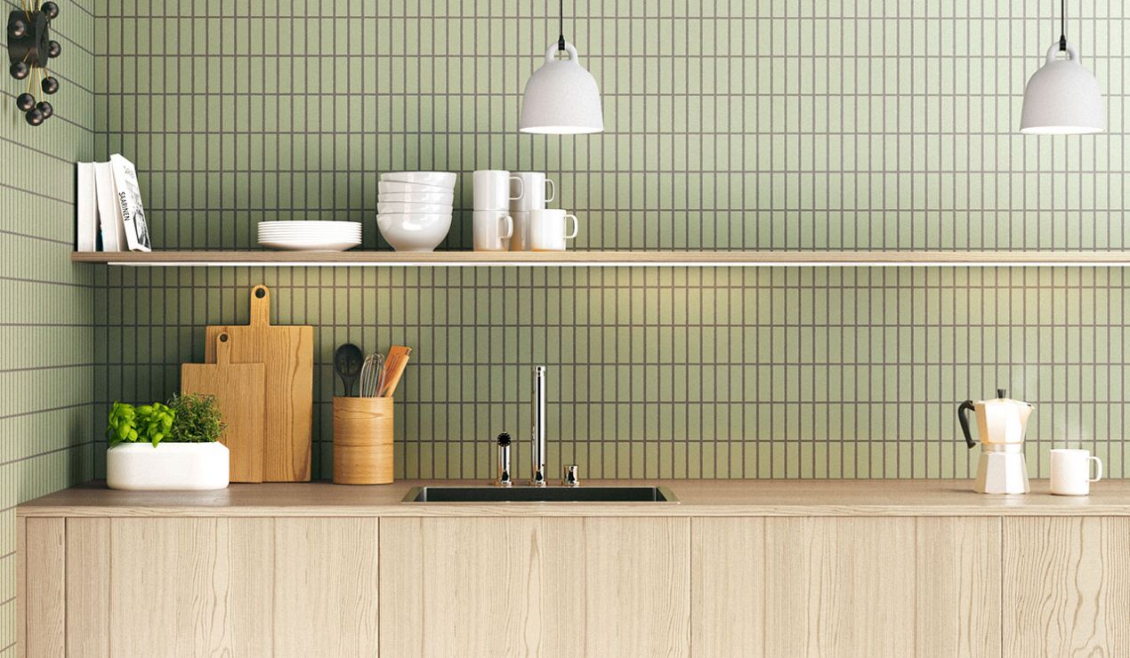 Modellen Stick, här i en grön matt kulör, ger ett klassiskt uttryck till både kök och bad.