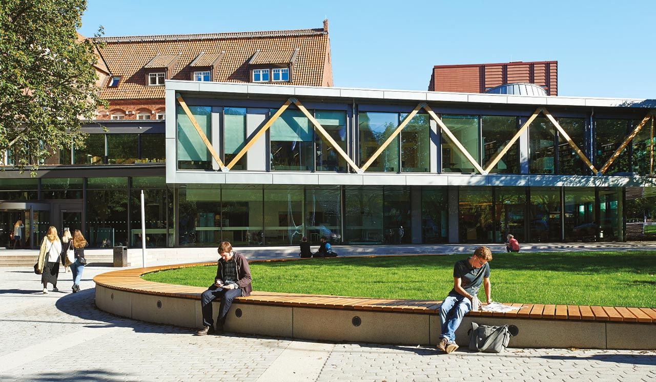 Juryns motivering: Plattorna på tillbyggnaden förhåller sig på samma gång fritt som traditionsenligt till de historiska tegelmiljöerna. Tillbyggnaden förenar flera generationers universitetsbyggnader på ett skickligt sätt, där de specifika och sociala delarna mot gaturummen har getts en öppen och transparent utformning, och de mer generella kunskapsmiljöerna i högre byggnader ligger tillbakadragna och ansluter till tegelarkitekturen med ett samtida uttryck genom precist utförda fasader i granitkeramik.