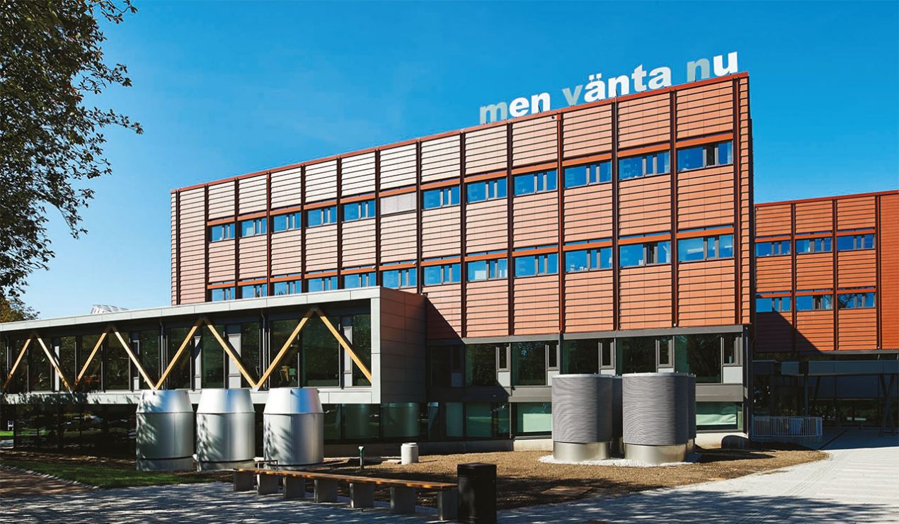 Med prisbelönt röd keramikfasad