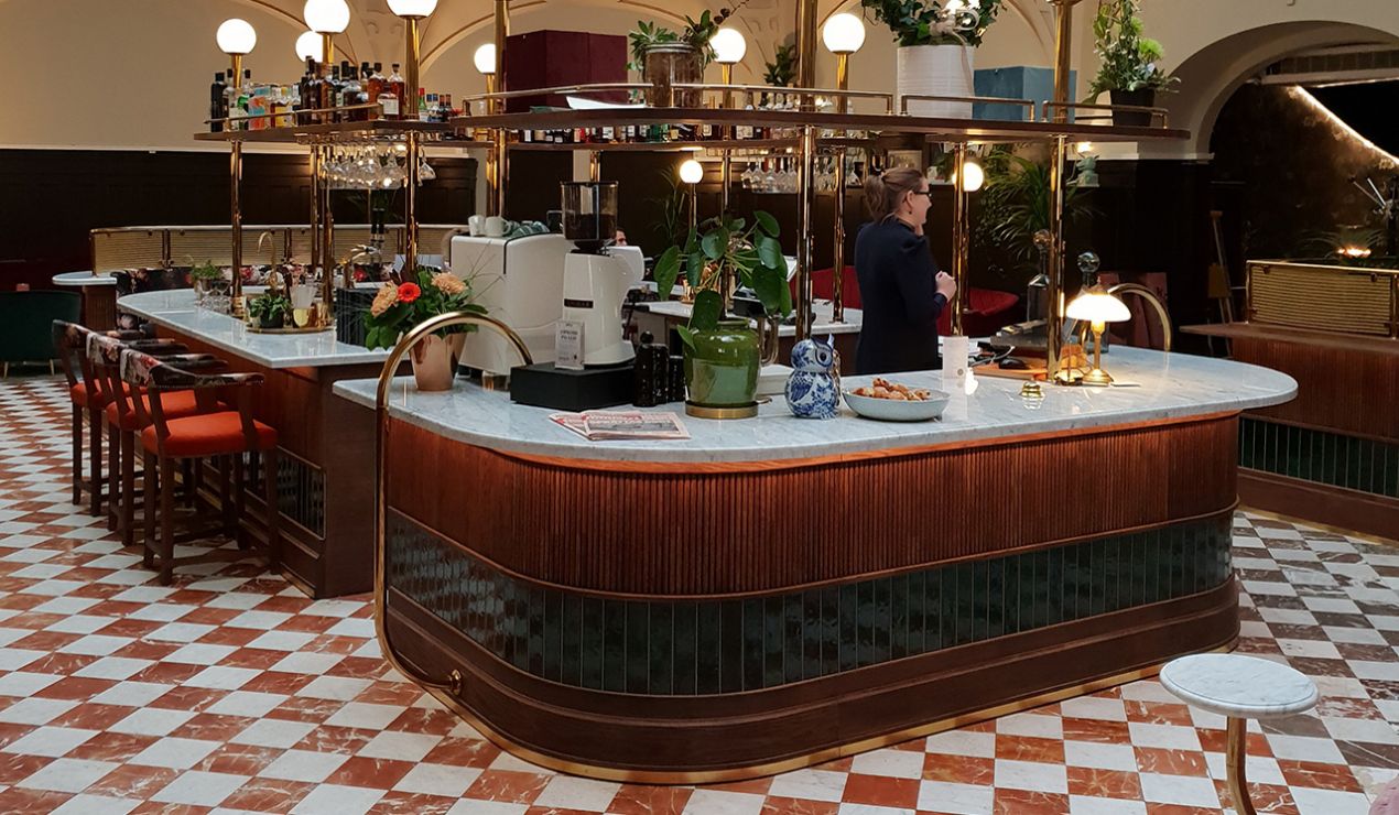 På bardisken i Atrium baren, med sin slående arkitektur och inbjudande design, återfinns en grön handgjord kakel från italienska Pecchioli. Vidare i Venti trattoria, det rebelliska vincaféet, hittar ni en specialbeställd vit och svart mosaik i mönster med tillhörande text från STON.