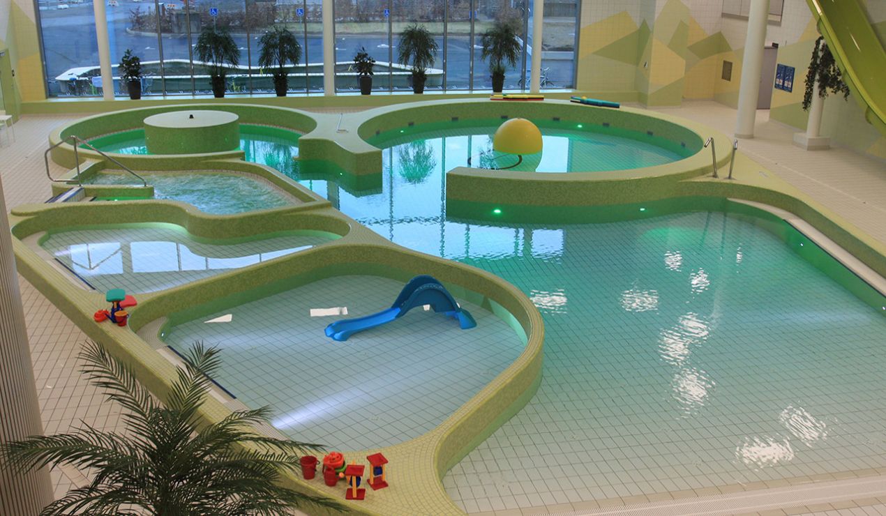Badet inrymmer bland annat en tävlingsbassäng med 10 banor, två rutschkanor i äventyrsdelen, en Spa-avdelning, två varma träningsbassänger, Bistro, samt Gym.