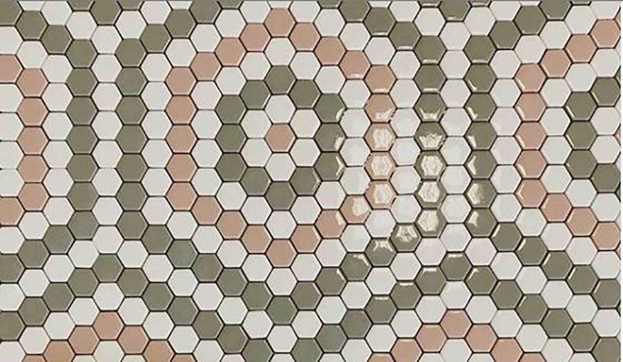 Mosaiken är gjord av 100% återvunnet glas. Man har använt gamla glaslock som krossats och gjorts till ett pulver för att sedan pressas samman i olika former och brännas i 1300 grader. Den höga temperaturen gör att mosaiken blir extra hållbar och tålig mot smuts.