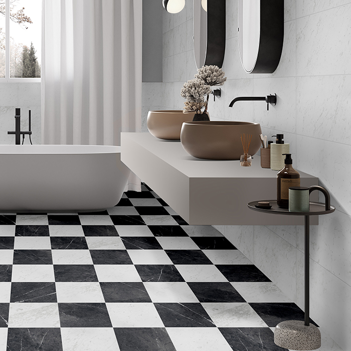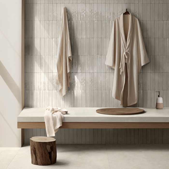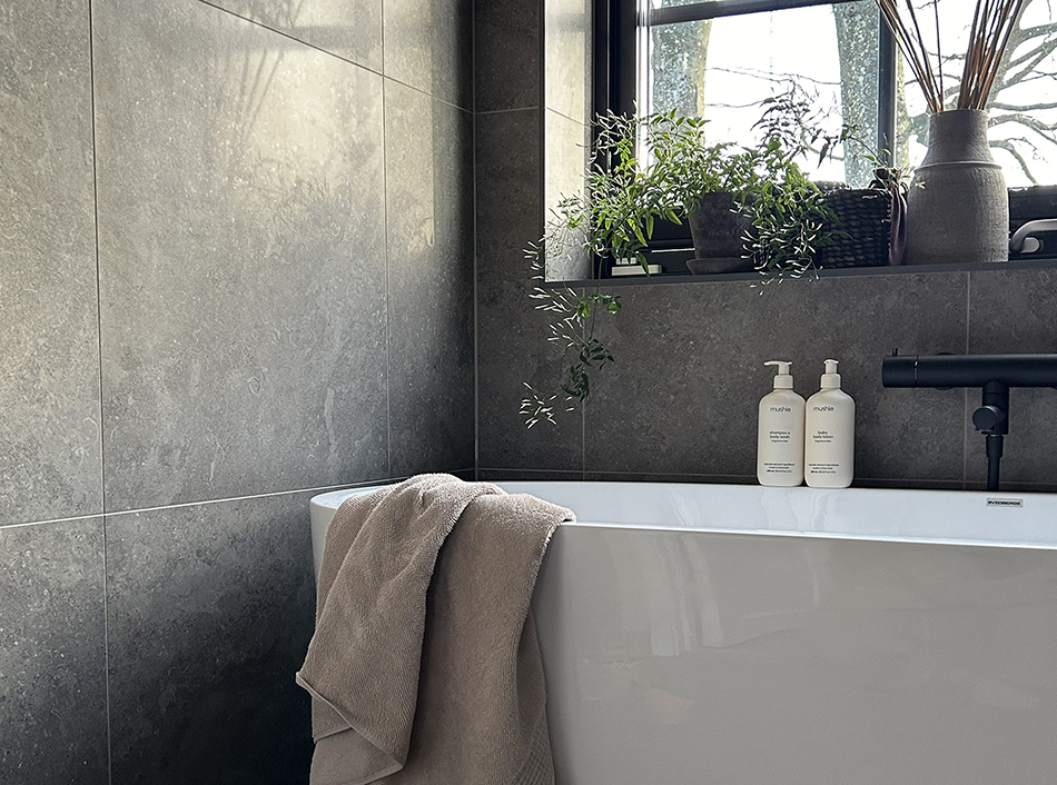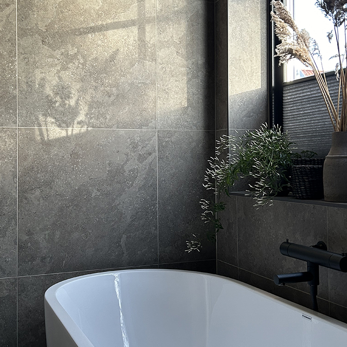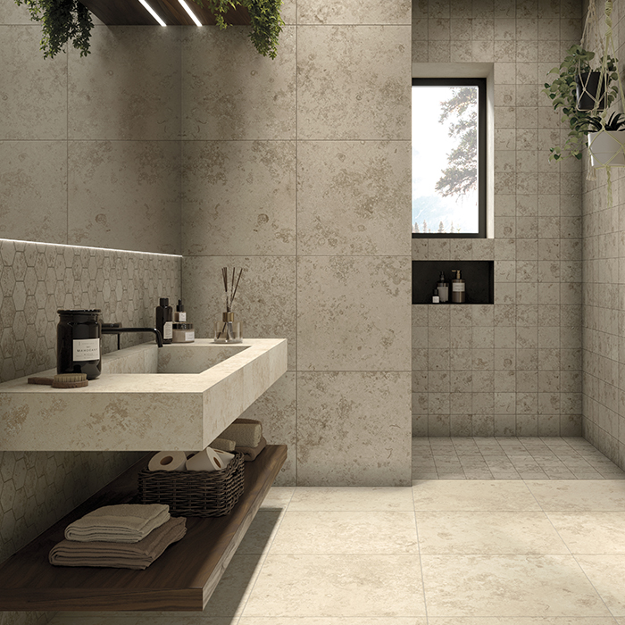 Skapa ett modernt badrum med naturliga inslag och oregelbunden textur med serien Norr.