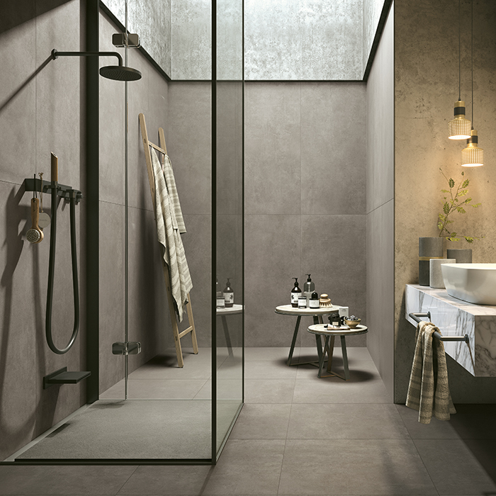 Glocal, en avskalad serie inspirerad av betongens råhet & flexibilitet som passar perfekt i badrum.