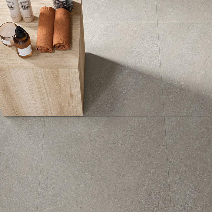 Med inspiration av Jurakalksten med fossiler ger Skalsten en naturlig och lugn känsla till alla badrum.