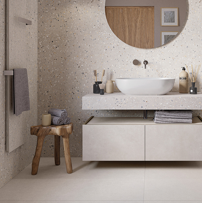 Serien Paper från 41zero42 ger helt nya möjligheter för badrum med läckert mönstrad granitkeramik.