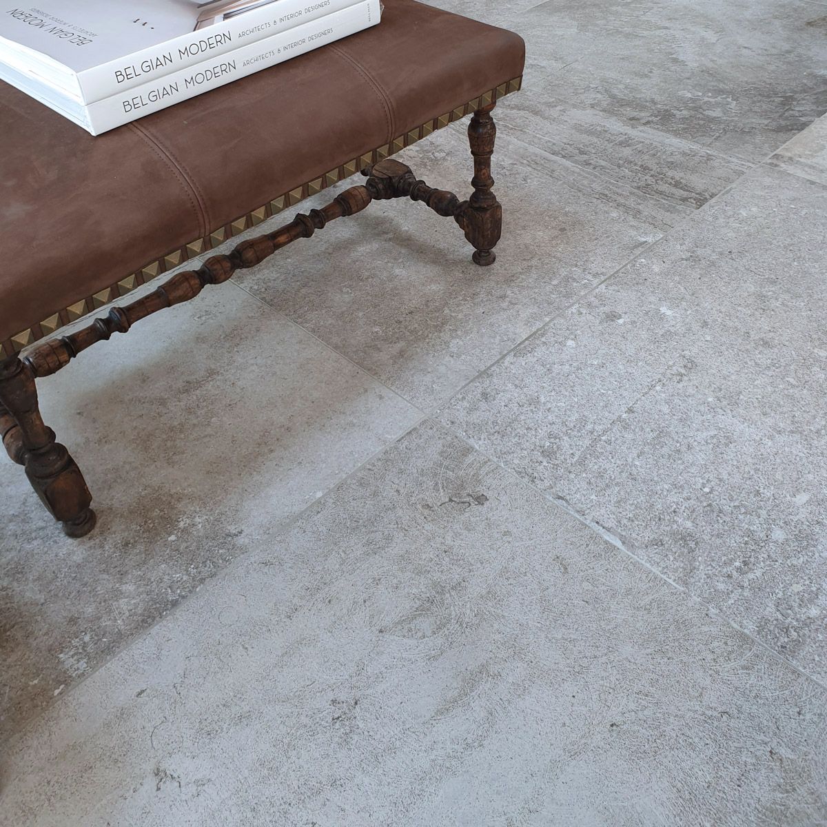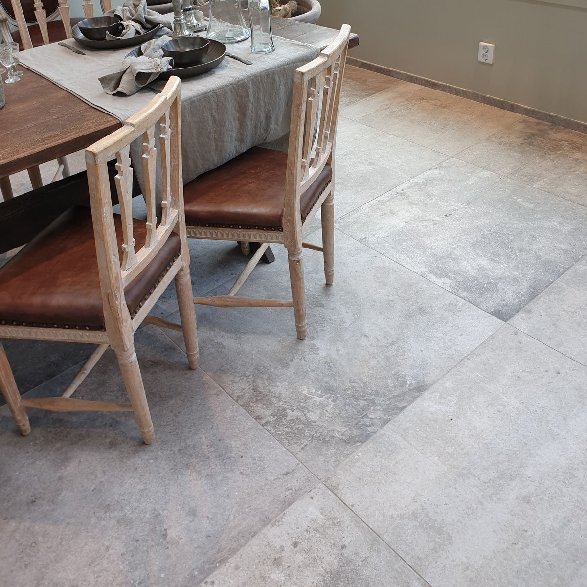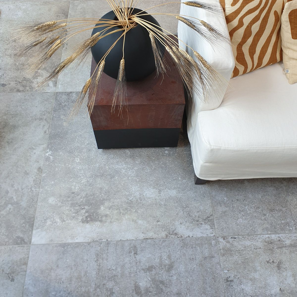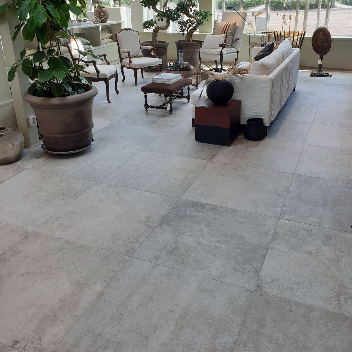 På golvet valde man att lägga La Roche Grey matt i formatet 80×80. En serie som ger en känsla av antik sten i modern tappning, vilket passar väl in i denna butik vars sortiment består av antikviteter i kombination med modern design.