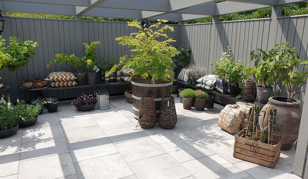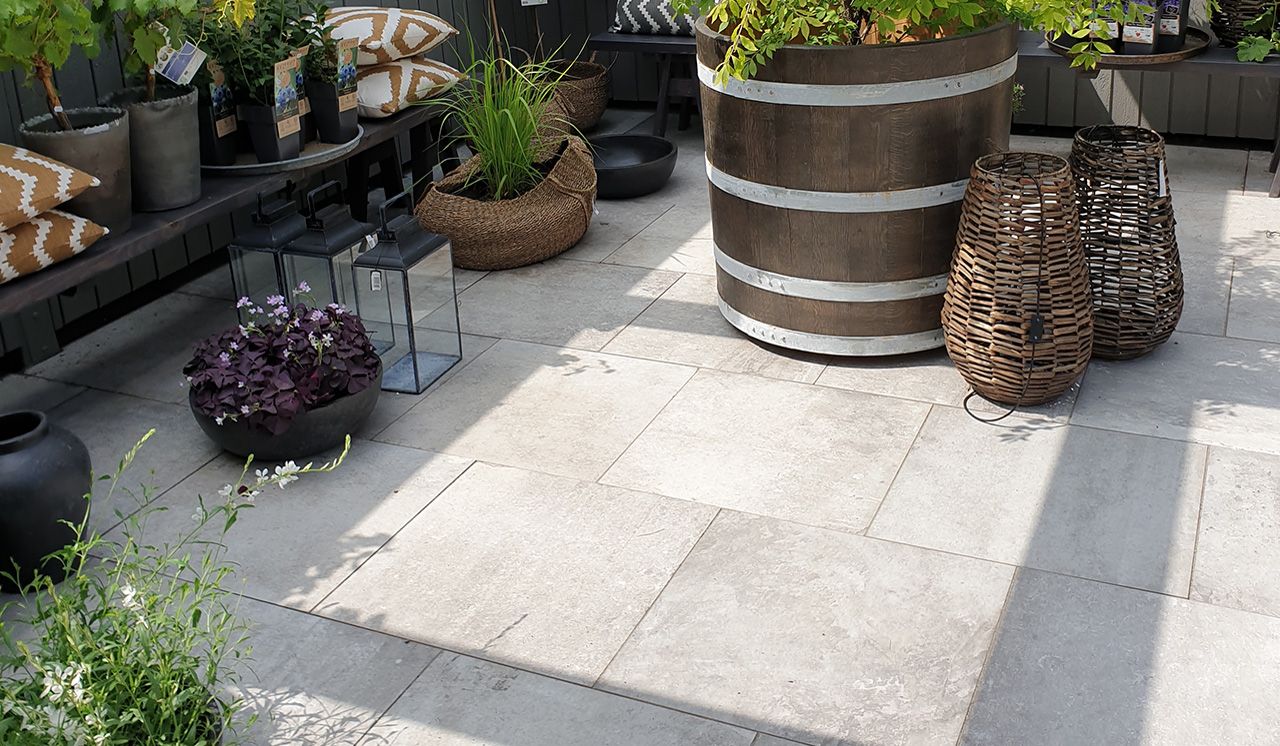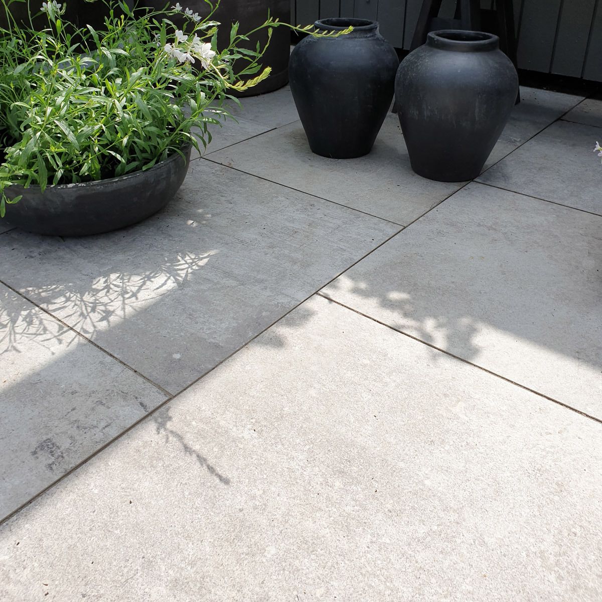 För ett enhetligt uttryck använde man sig även av La Roche Grey på tillhörande uteplats, i 20 mm varianten placerad på hårt packad sandbädd.