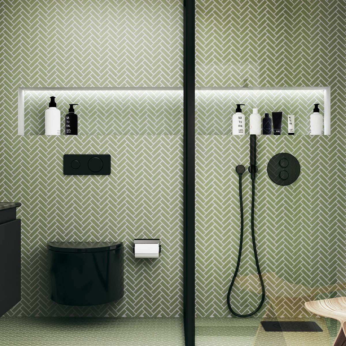Modellen Stick, här i en grön matt kulör, ger ett klassiskt uttryck till både kök och bad.