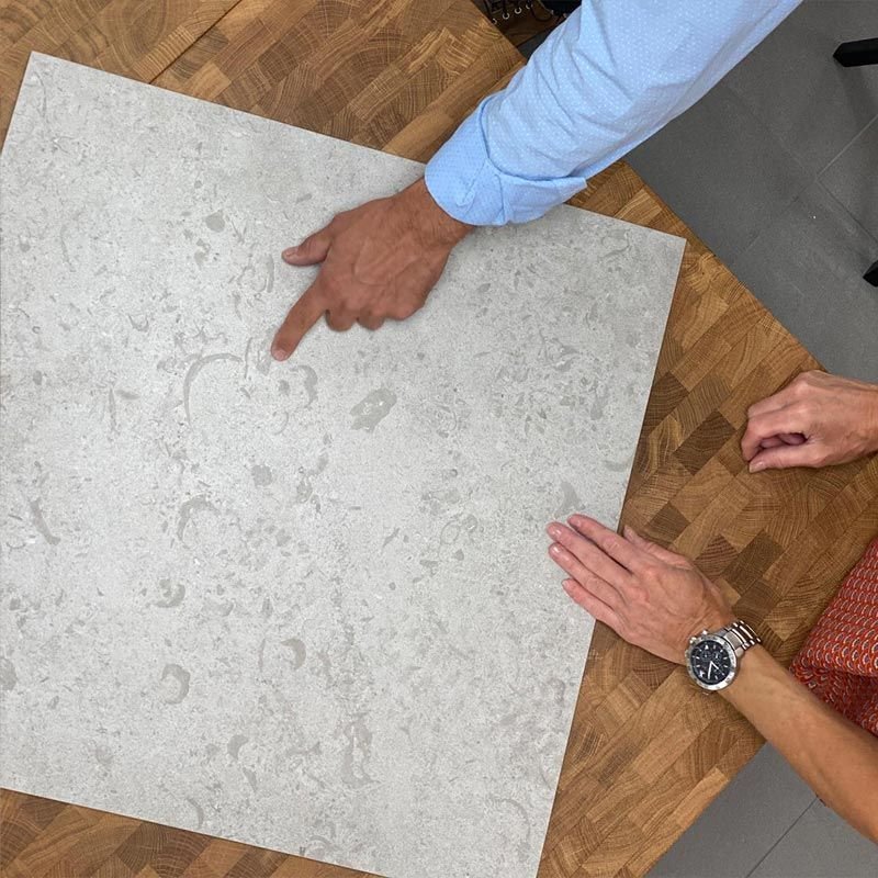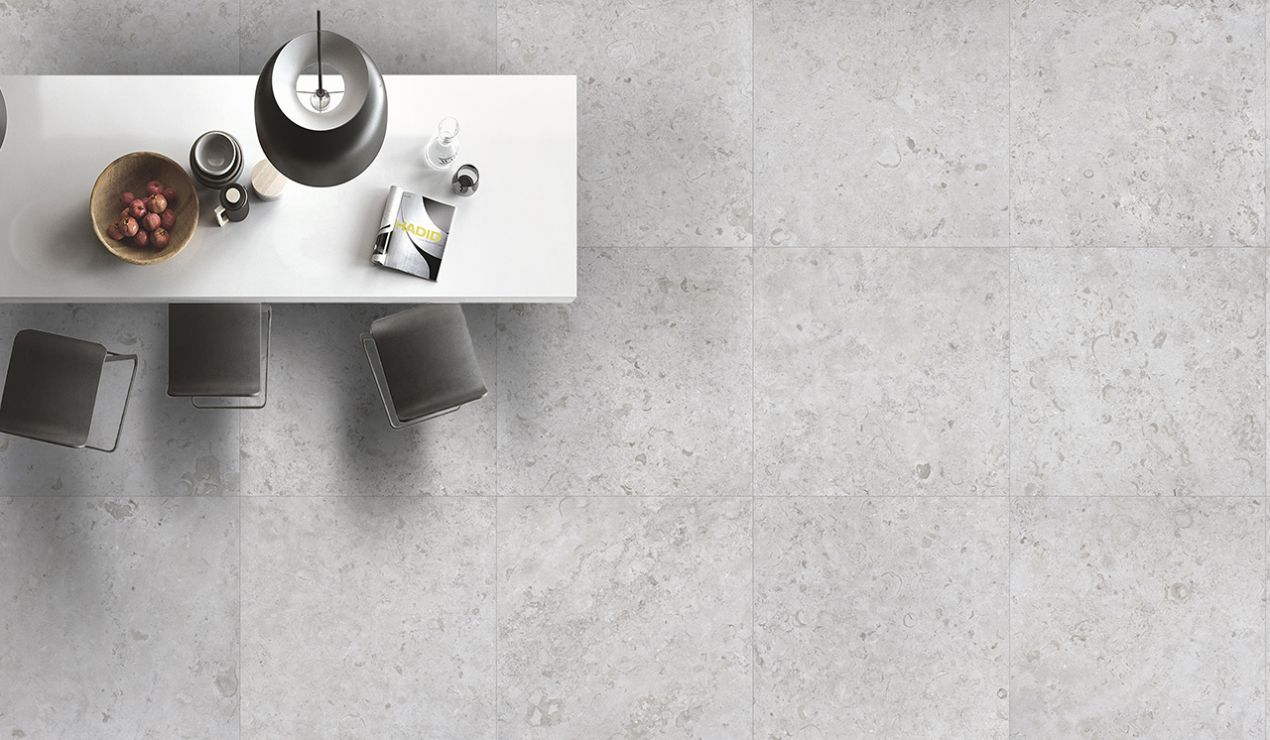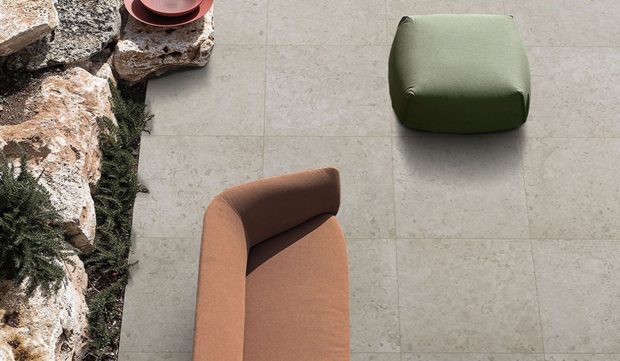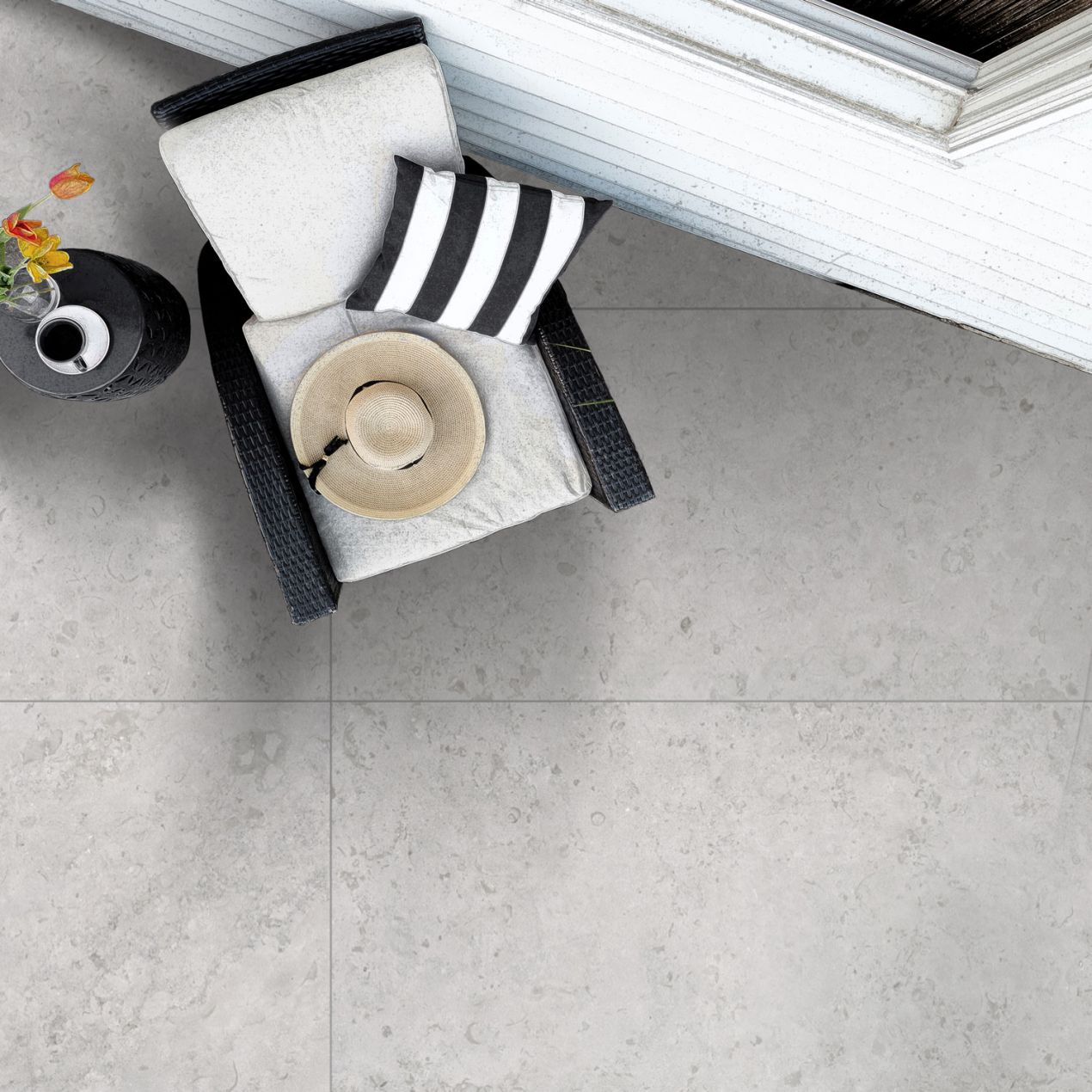 Granitkeramiken Gotland ger möjlighet att klä in ytor både inomhus och utomhus i vacker kalkstenslook.