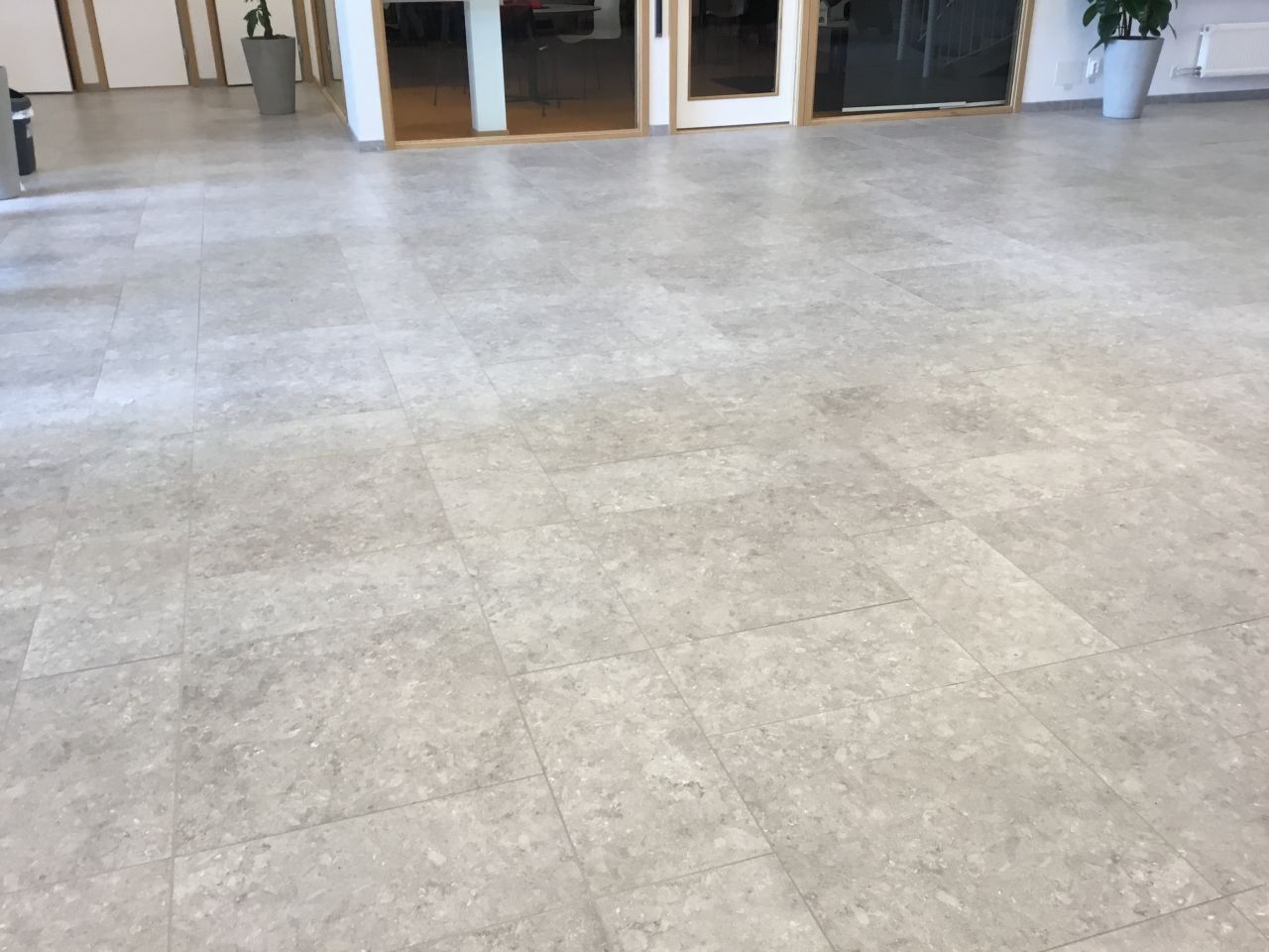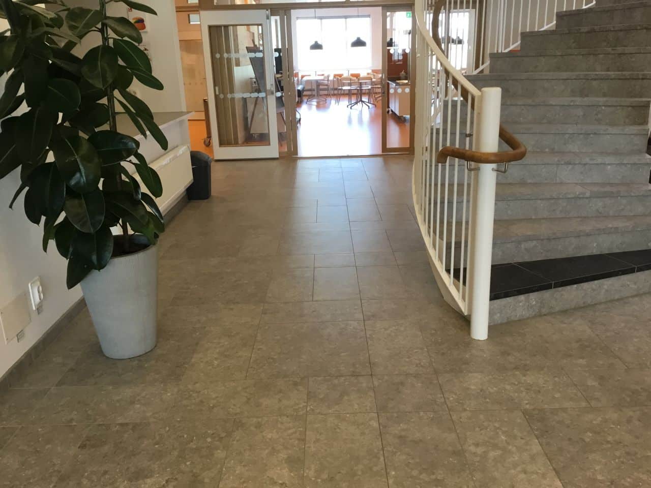 Arkitekten Christel Persson har valt att kombinera 60×60 med 30×60, samt att Christel har valt att klä alla trappor på skolan med granitkeramik. Serien som man använder sig utav heter Na.me från Mirage och färgen är Gris belge.