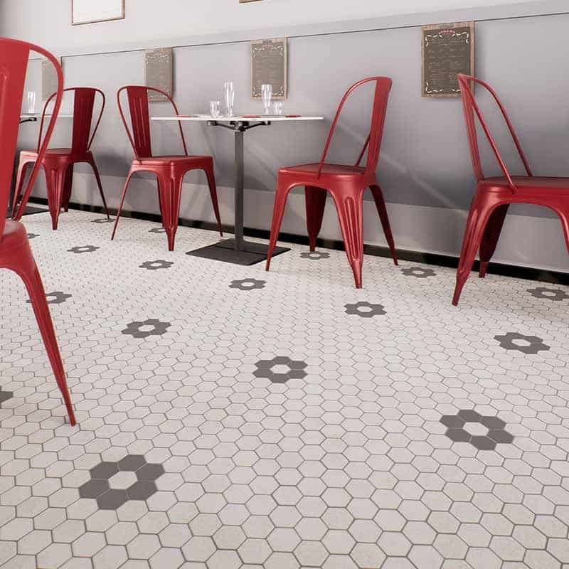 Esagono från Ce.Si. ger möjligheten att skapa vackra mönster med hexagonformade plattor i olika färger.