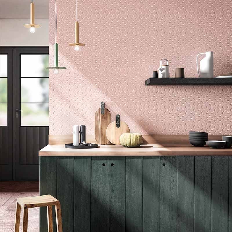 Utdragna hexagonala mosaikplattor i modellen Picket från Dvothed bjuder in till kreativitet och spännande ytor.
