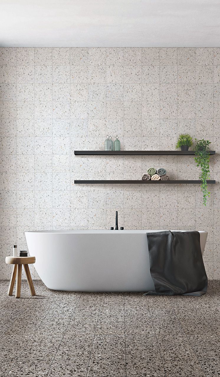 Serien Venezia är en tolkning av det klassiska terazzogolvet som har sitt ursprung i antikens Grekland och Italien. Ett golv som för tankarna till slipad granit och som är ett resultat av ett fantastiskt hantverk, förädlat genom århundradena för att tillgodose önskemålen från kunder med högt raffinerad smak. Liksom terazzogolvet är Venezia en serie som är estetiskt tilltalande med klassiskt mjukt uttryck och vackra färgkombinationer. Serien kombinerar skönhet med granitkeramikens höga funktionalitet vilket möjliggör användning i såväl privata bad och kök som i kommersiella rum med hög belastning.