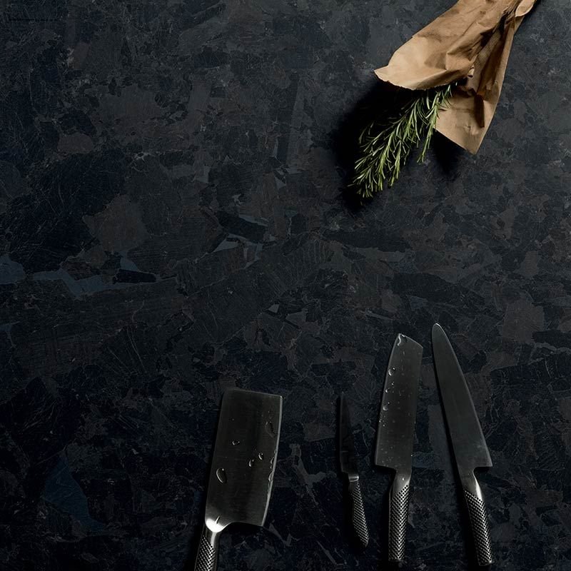 Den svarta kulören Venom av metalliska granitkeramiken Lemmy skapar ett djup och vackra kontraster.