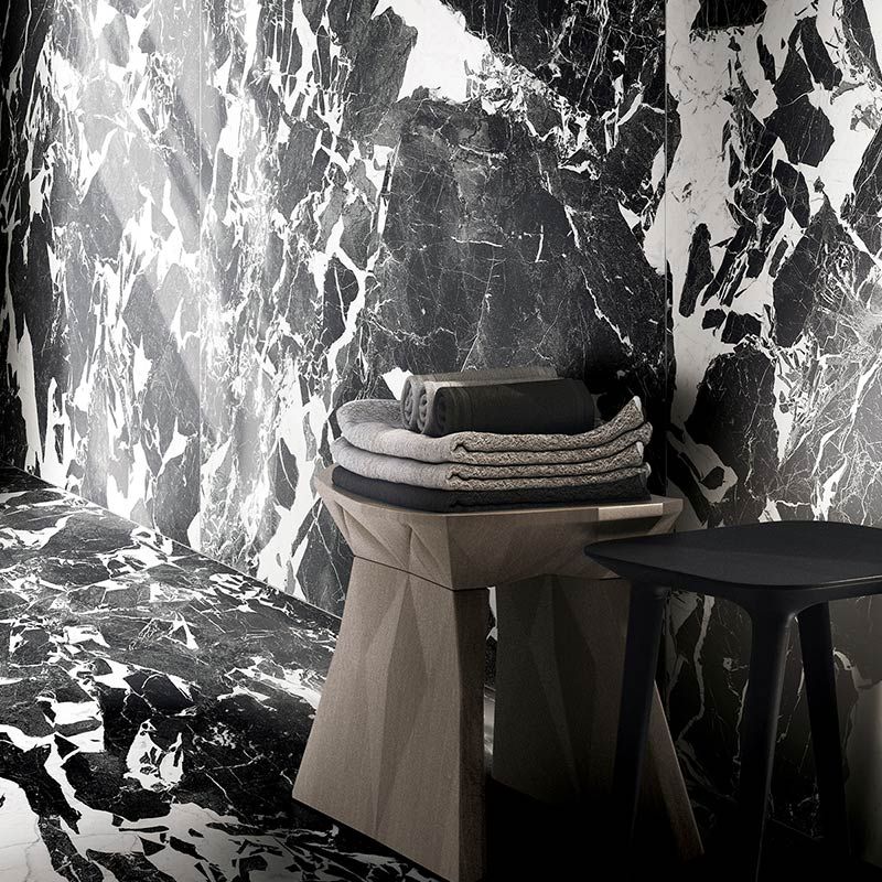Lyxig och kontrastrik marmortolkning i serien B&W Marble från FloorGres.