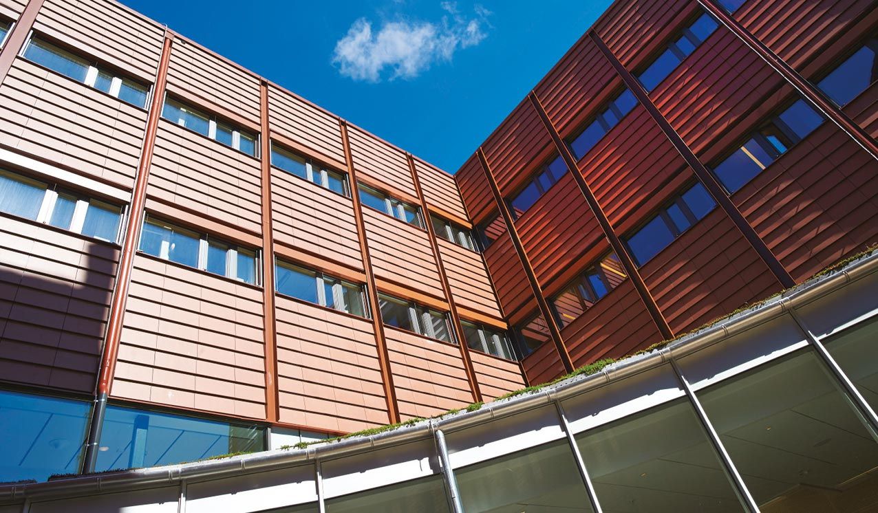 Med prisbelönt röd keramikfasad