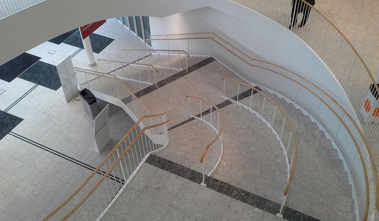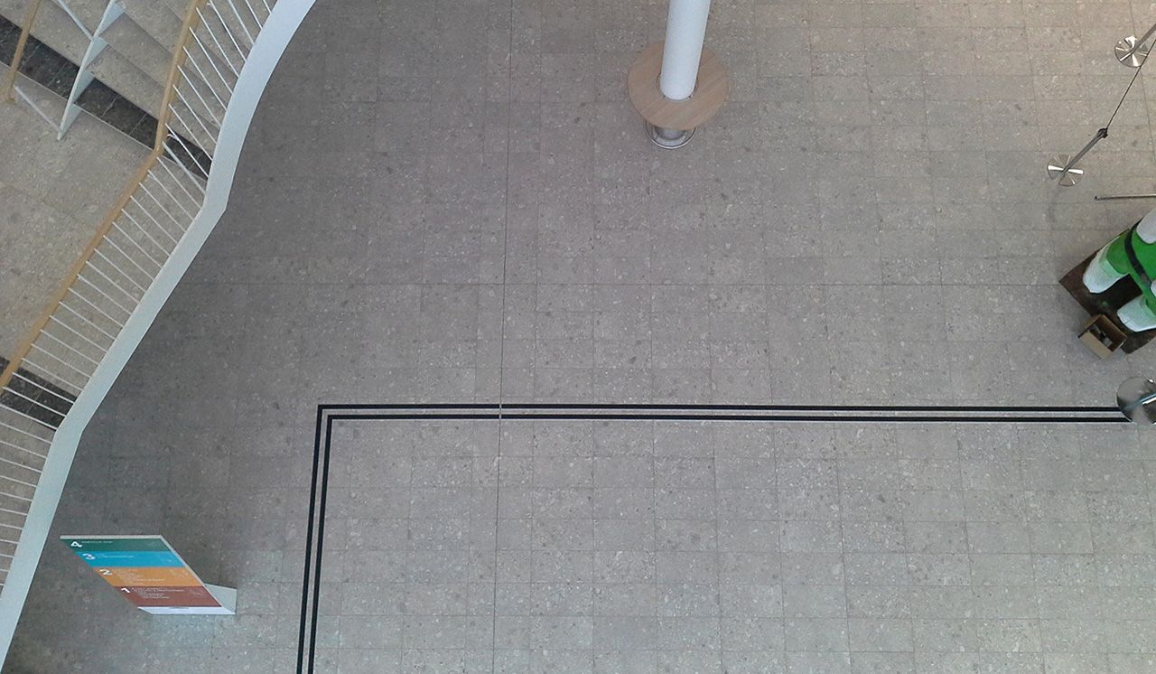 Till detta projekt valde arkitekterna från Tengbom den fantastiska granitkeramiken Norr, från Italienska Mirage. Till golv, trappor och den centrala foajén där 3500 personer passerar per dag valdes Norr vit i formatet 30×60 med svart kontrast kulör. Norr med sitt originella utseende gör sig ypperligt i offentliga lokaler med hög gångtrafik.