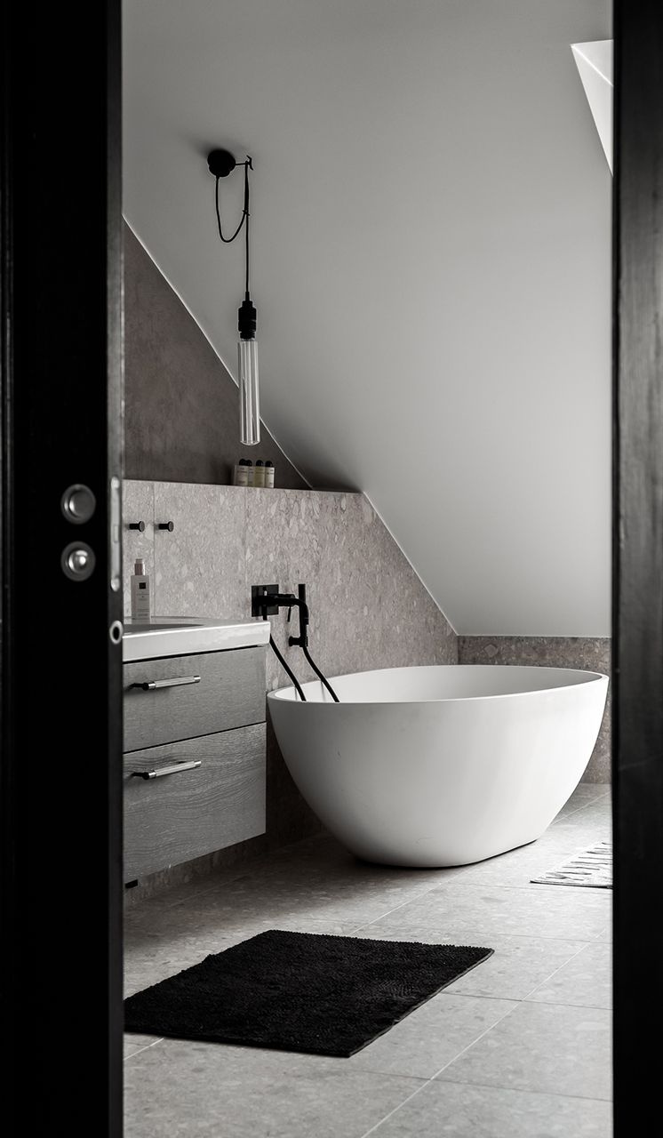 Vår kund Byggskills har renoverat en vindsvåning mitt i centrala Stockholm. Material de använts sig av är Norr Vit 60×60 & 60×120, Roma Grafite 7,5×30 samt Carrara 60×120. Inredning kommer från Vedum och Macro.