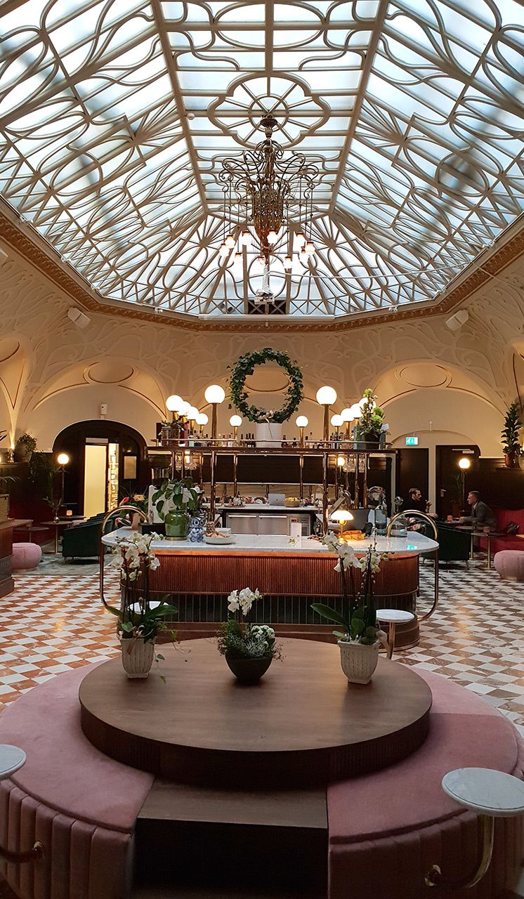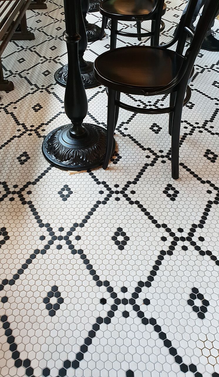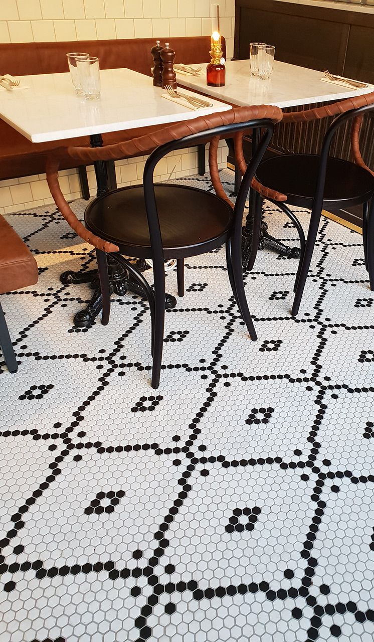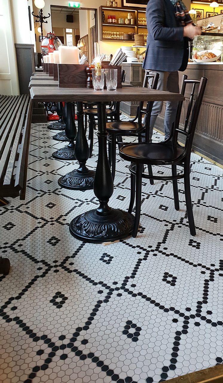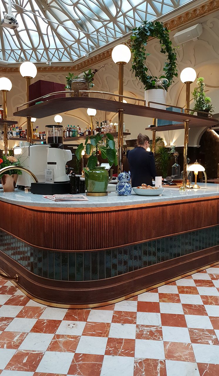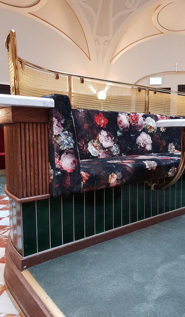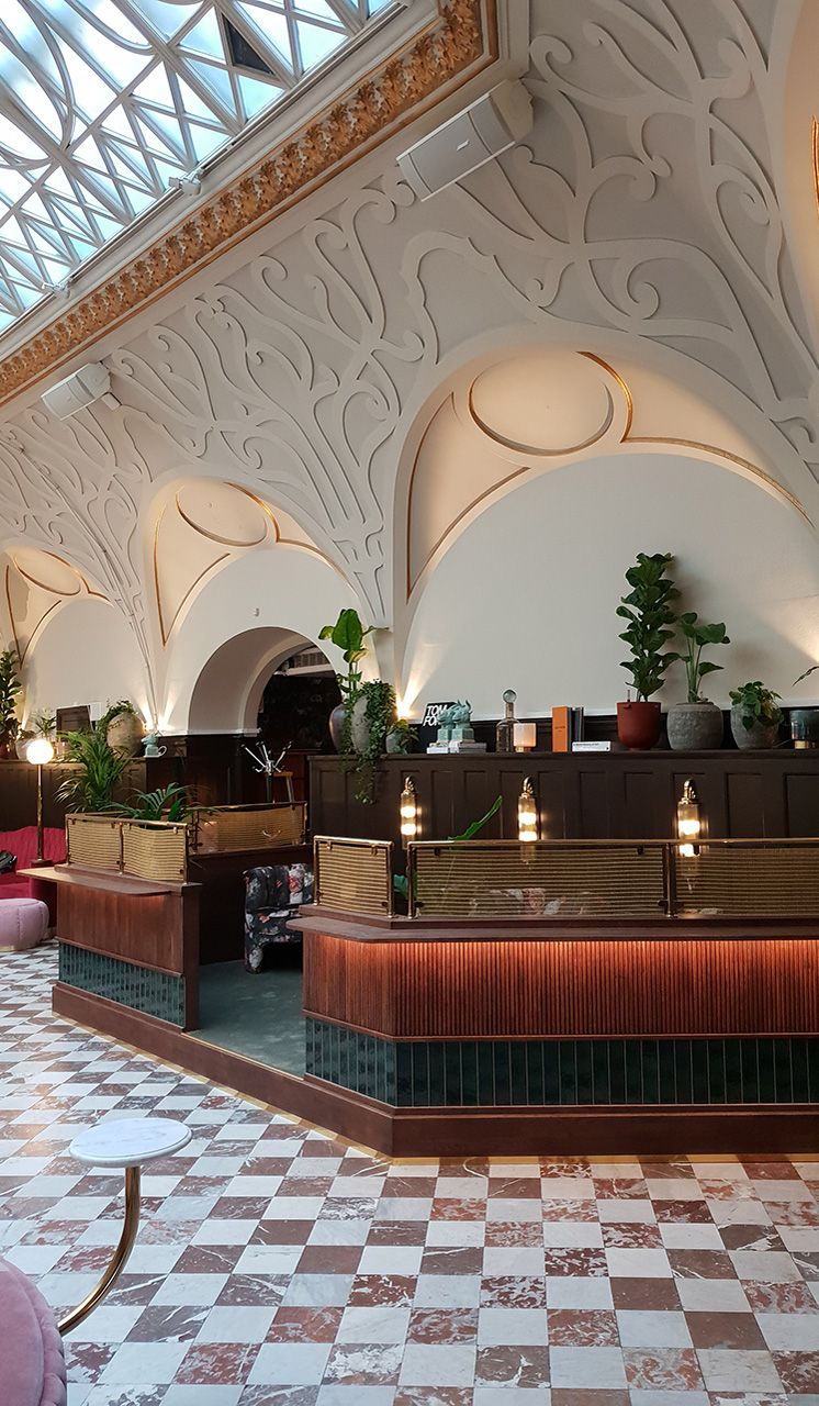 På bardisken i Atrium baren, med sin slående arkitektur och inbjudande design, återfinns en grön handgjord kakel från italienska Pecchioli. Vidare i Venti trattoria, det rebelliska vincaféet, hittar ni en specialbeställd vit och svart mosaik i mönster med tillhörande text från STON.