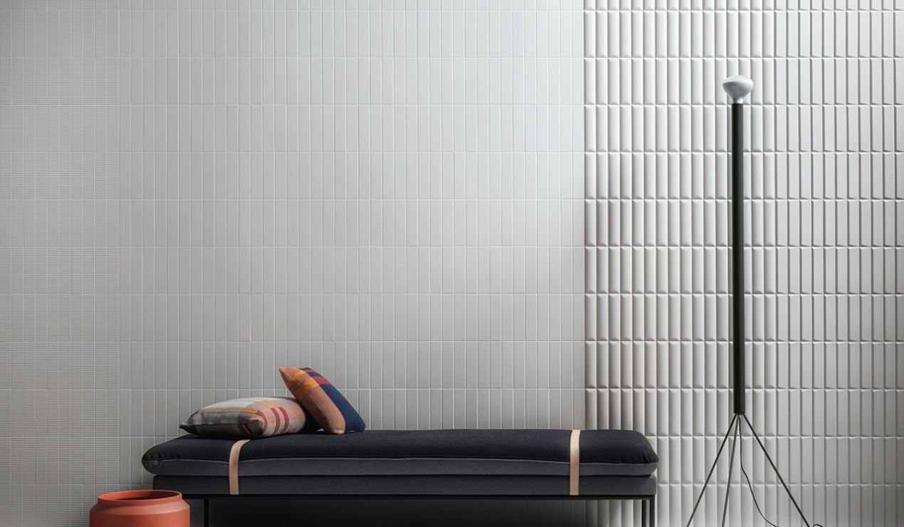 Biscuit Bianco Mix ger den vita väggen liv med hjälp av ljus och skuggor.