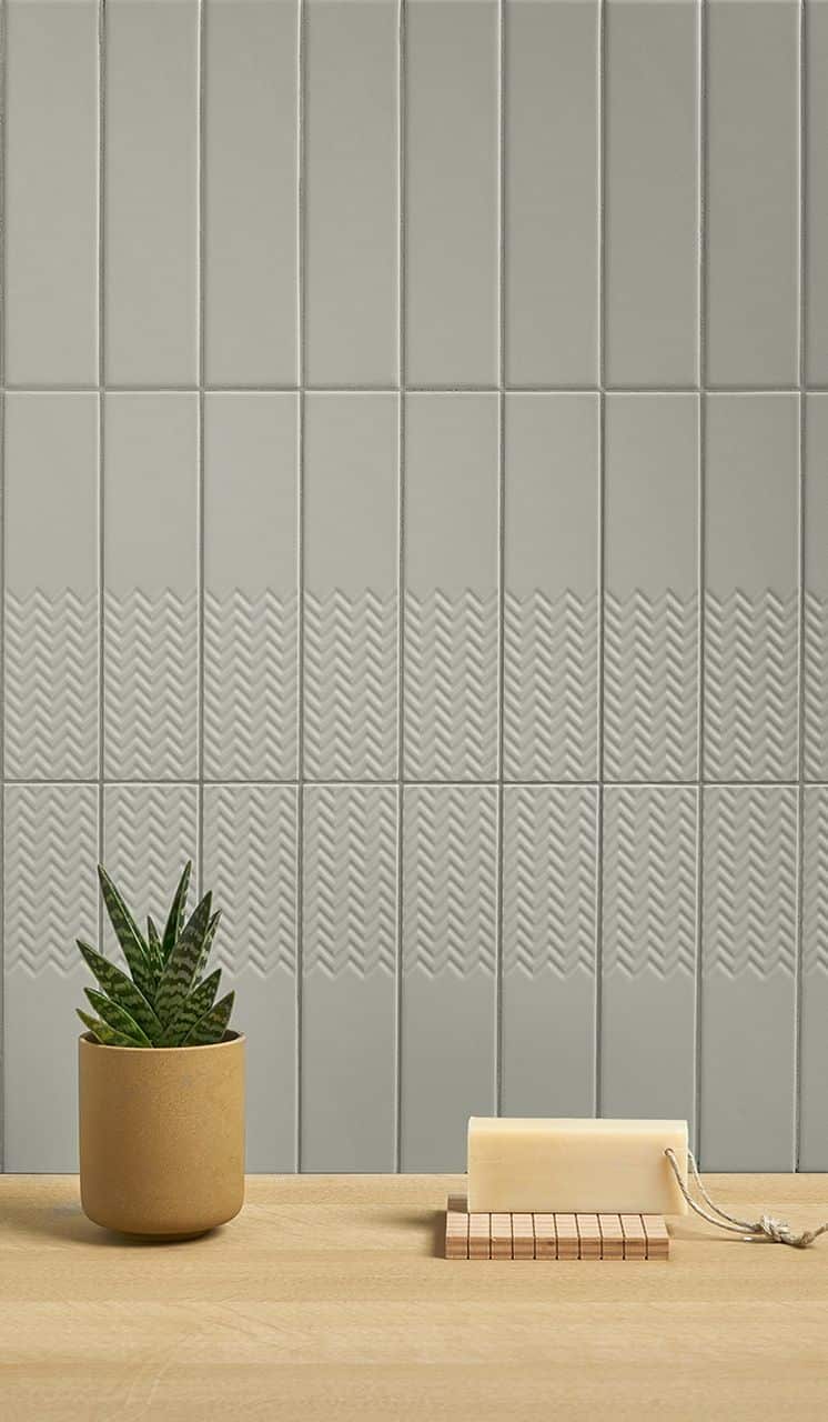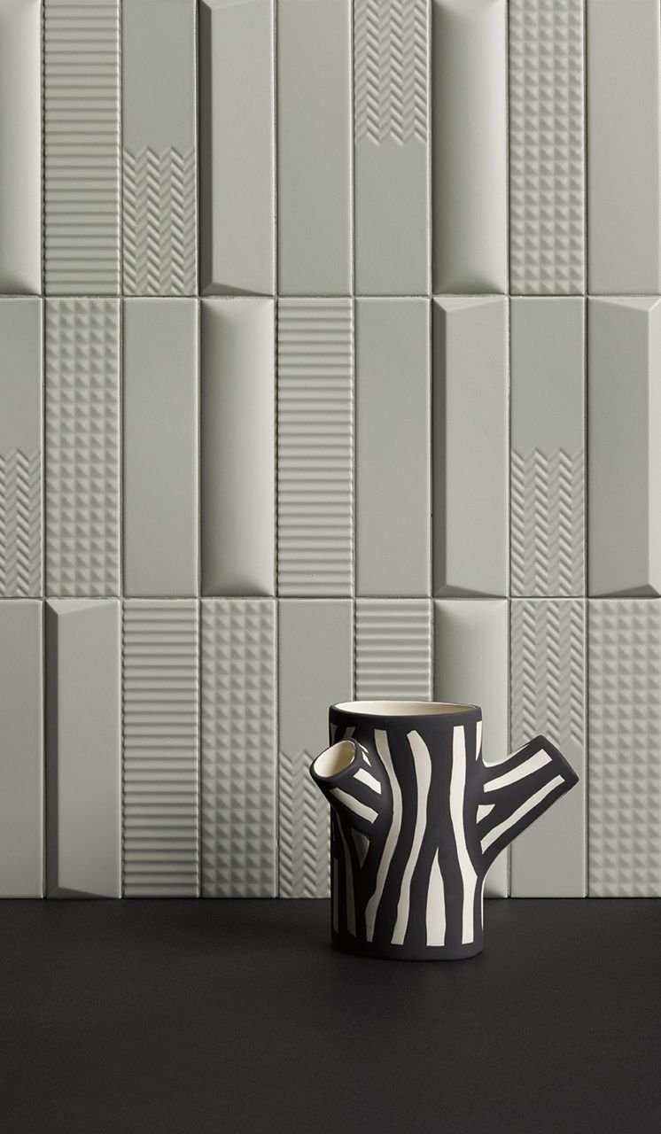 Biscuit i kulören Salvia och kombination av plattorna Waves och Plain.