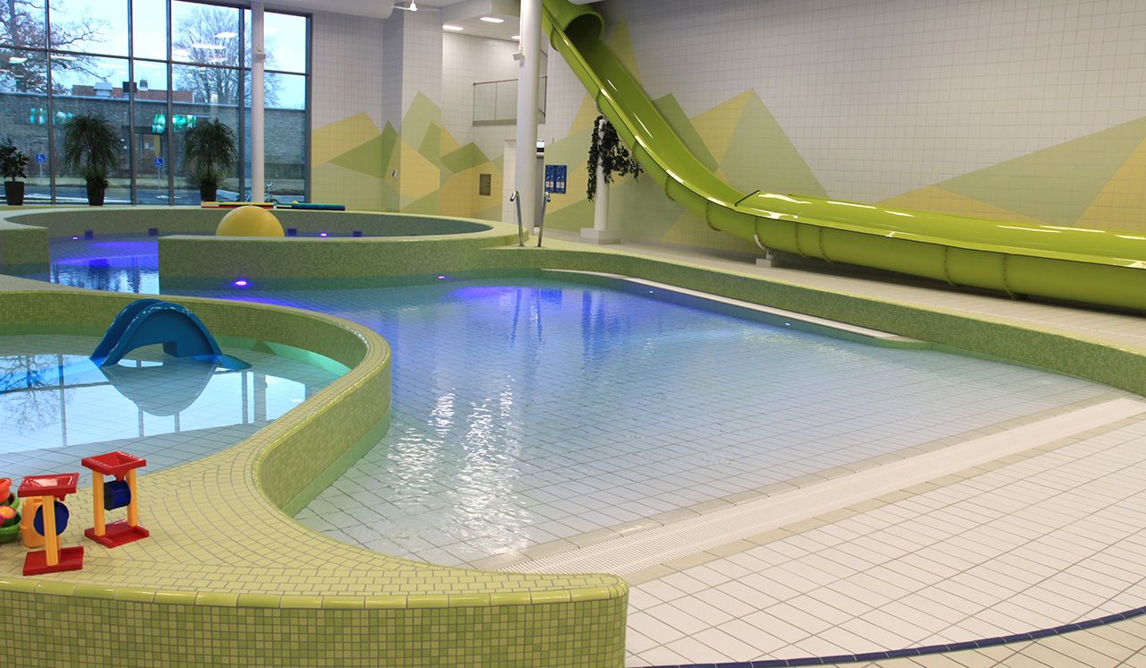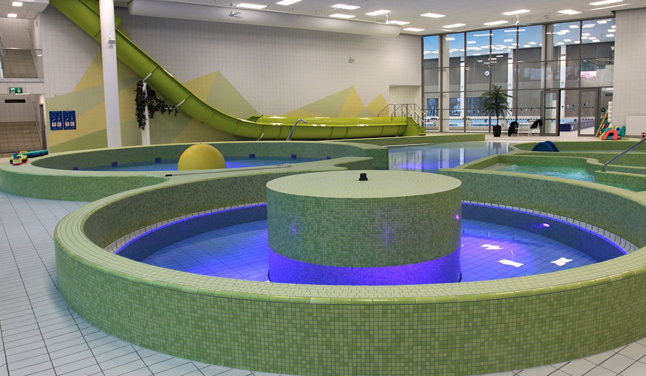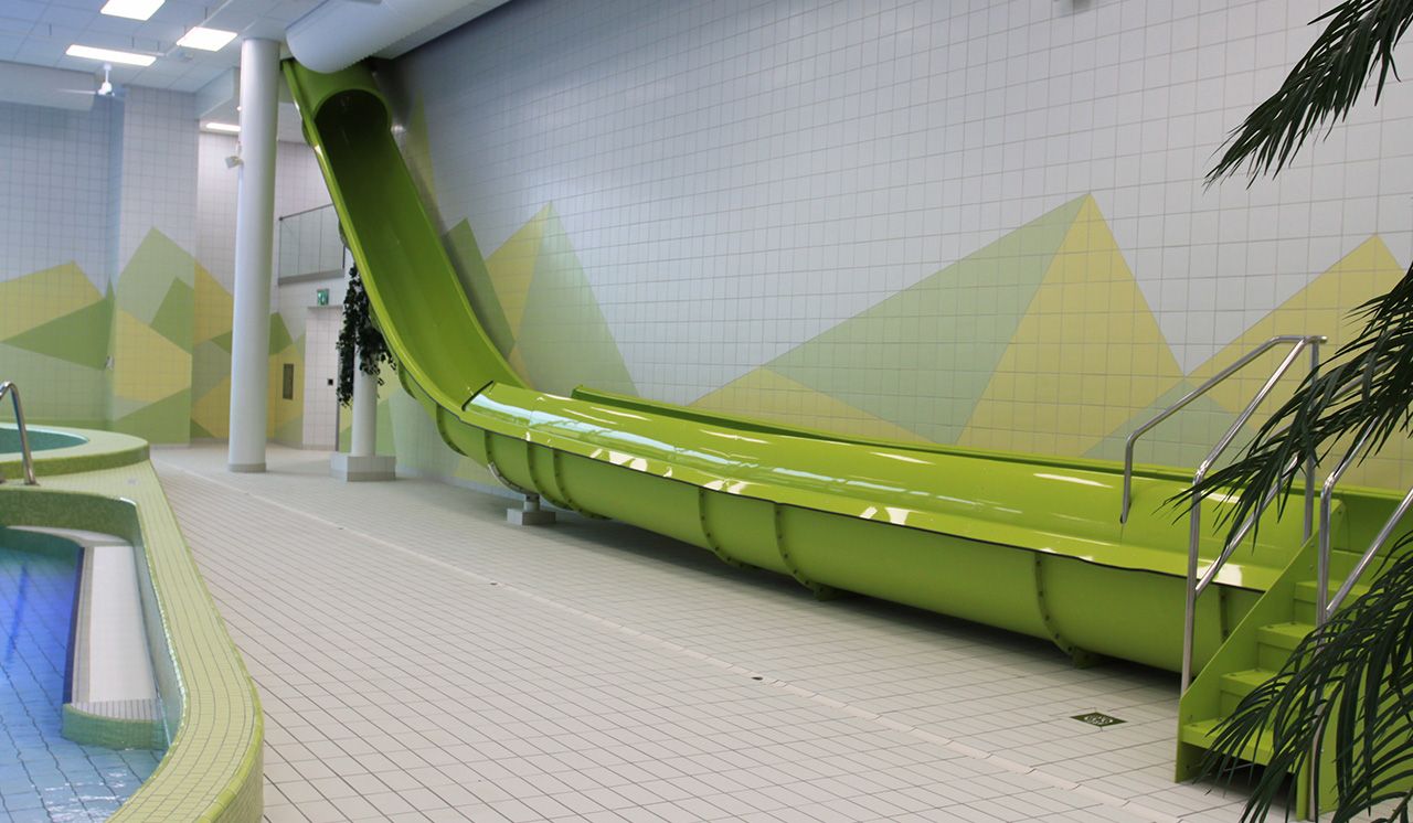 Badet inrymmer bland annat en tävlingsbassäng med 10 banor, två rutschkanor i äventyrsdelen, en Spa-avdelning, två varma träningsbassänger, Bistro, samt Gym.