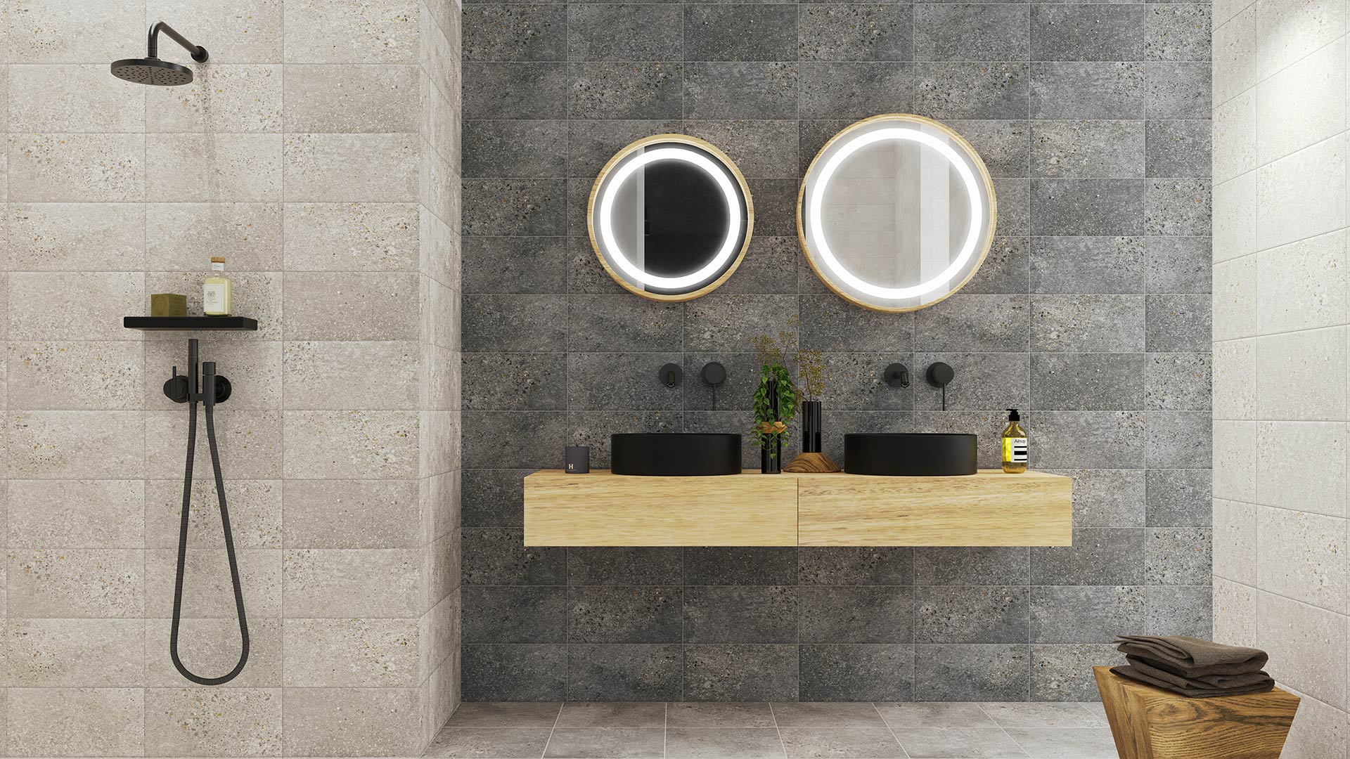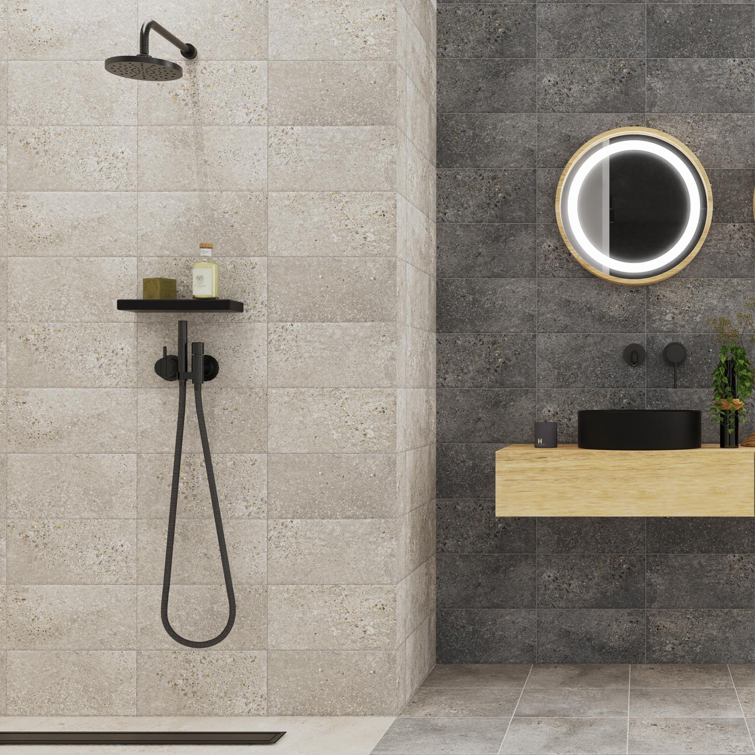 Grain är en stenimitation med inslag av korn i olika storlekar. Stilfullt och modernt utseende som passar i många sammanhang.