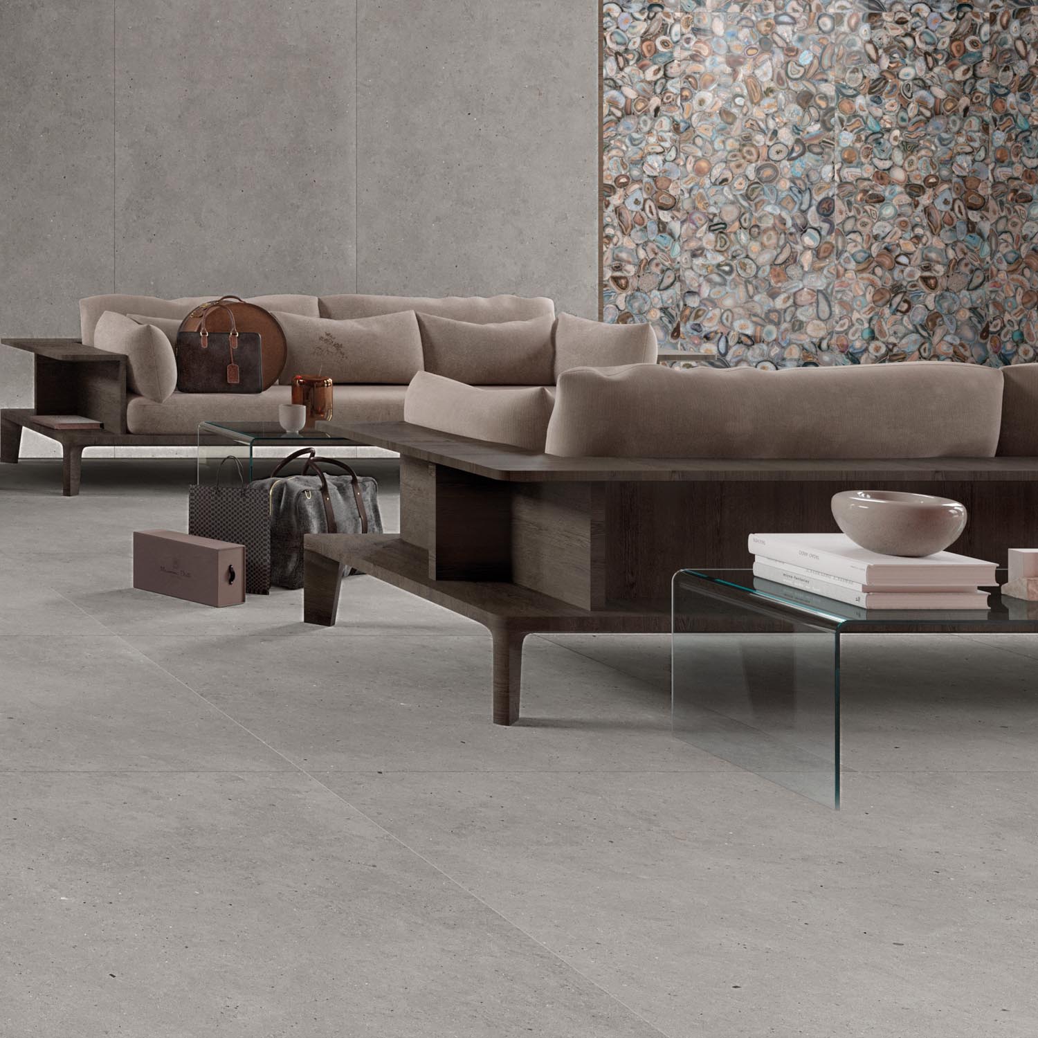 Grain är en stenimitation med inslag av korn i olika storlekar. Stilfullt och modernt utseende som passar i många sammanhang.