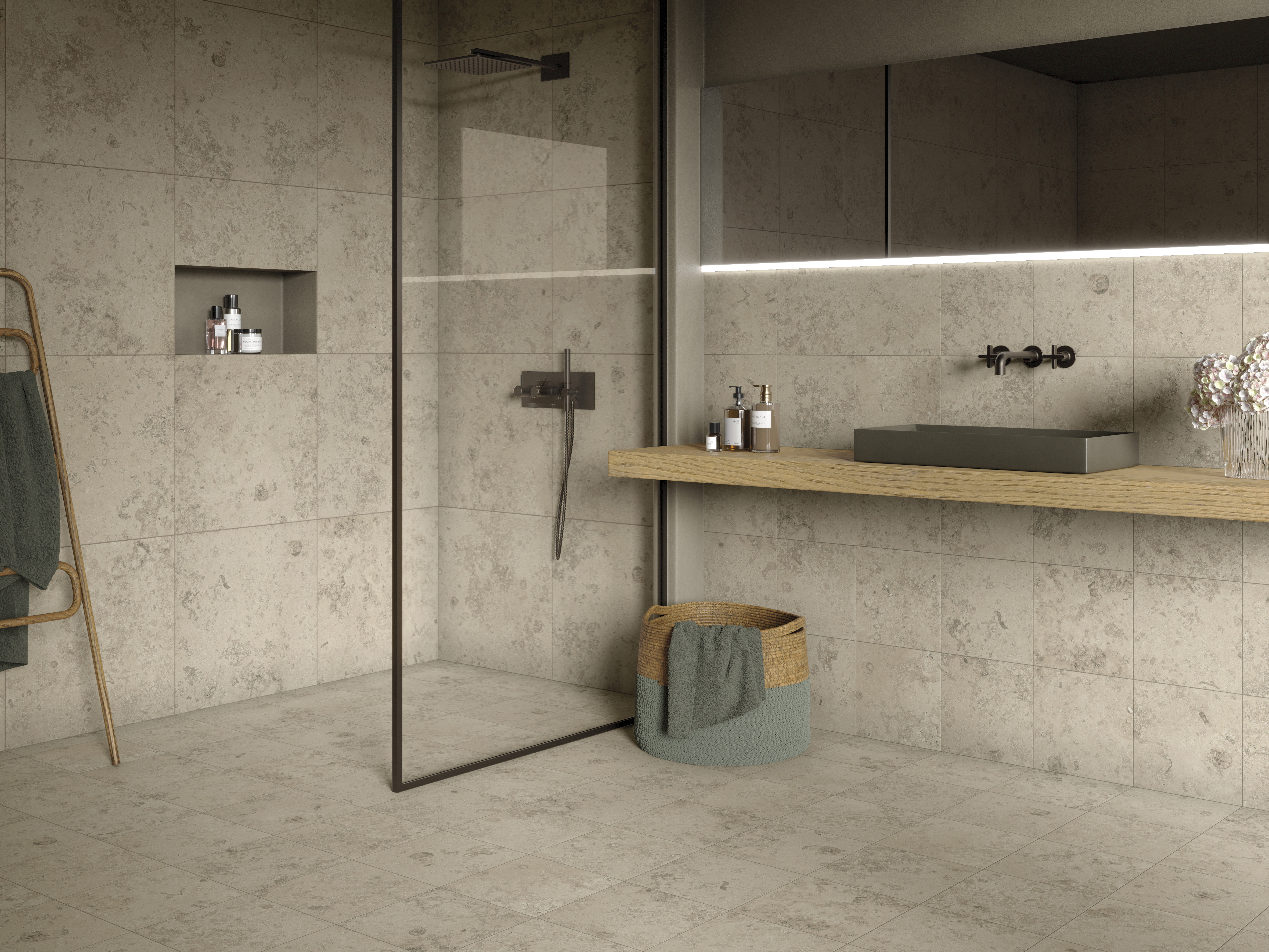 Mönstret är inspirerat av Jurakalksten med fossiler – små spår av liv som en gång funnits, bevarade i sten genom årtusenden.